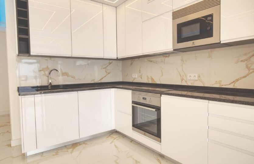 With two well-appointed bedrooms, including a main en-suite, and a family bathroom equipped with luxurious, spacious showers, comfort is paramount. Enter through a generous entrance hall into a vast lounge and dining area that seamlessly connects to a fully fitted modern kitchen. Step out onto the balcony to enjoy the fresh sea breeze.